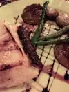 The greeting at the door wonderful. The facility is beautiful I love that wood and wine cigar bar style. The out door sitting was nice. The service is spot on they are very attentive and polite and willing to help. I had sea bass all I can say large serving and I left nothing behind. The wife had tenderloin steak delicious and the presentation top class. The wine selection massive and the waiter knowledge of wine classes and style was spot on. So for a suggestion the desert menu has a crep that is made with cottage cheese I would of loved it with cream cheese the waiter attempted to see if it could be changed but was told those are pre-made, but still a great place great people and great food.