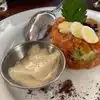 We visited for lunch without a reservation and were seated immediately although the place was quite full. I had the "lobster roll" which was raw salmon wrapped round a lobster-based filling (no rice) and cut into small pieces like a typical sushi roll. Intended as an appetizer to share, it makes a nice meal if you eat all of it. One of us had the Caprese salad with shrimp and the other had the sea bass with portobellos and asparagus. All of the dishes were beautifully presented and tasted great. It was very busy but we never felt rushed or neglected. The outdoor eating area has a fountain to counteract the street noise, and is very pleasant when the temperature is mild. We opted to sit indoors due to the midday heat. There are a number of items on the menu that I'd like to try, so I will be back.