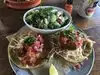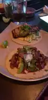 We stop by for an early quick lunch. Within minutes place was packed & people were being turned away. Ordered the taco y taco special (choice of two tacos, chopped salad or rice & beans or cup of soup). He opted for steak and fish taco. I chose chicken and carnita tacos. Steak & carnita won rave reviews. Chicken was good, although not as interesting. Fish was just okay. We both opted for the tortilla soup which was really more of a stew with excellent flavor and interesting play of textures. Had it been hot we would be raving about it. Salad at adjoining tables looked good. Not a lot of personality in the wait staff, definitely not looking to earn big tips. No smiles. On flip said, also did not ask the annoying question, "how are your first bites tasting?" Will come back to try the bigger dinner menu. $35 seemed a bit high when you're used to great taco truck meals.