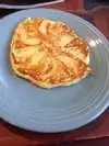 My wife and I both had pancakes, one with blueberries, the other with strawberries. They were excellent, not stacked, but one rather large flat pancake. Real maple syrup.