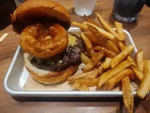 We visited this place on our trip to San Diego. The service was good and the food was good. We had the fried Pickles and they came sliced long way and fried. We had the Alehouse Burger and it was good. It was a little dry. I would not say it was great as We are from Texas and our burgers are hard to beat. Overall the visit was enjoyable. They have a rooftop with bar too. Not bad for a Cali Burger place!