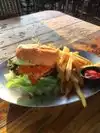 Good food, good beer, friendly staff and great location. Pub style food. Upstairs deck you can see the sunset.