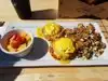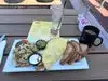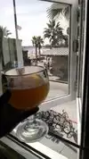 Sat outside then had to move inside because of some rain, still sat looking out over the ocean. Very entertaining, and always a lot going on. The view was awesome inside and outside , service staff was great, and the chorizo plate was really good. Great selection of beers too, just to wash down the breakfast!