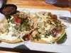 I had 2 shrimp tacos. Fine but not delicious and pricy ($6 each) for 1.5 pieces of shrimp inside. Mango Tango tasty but took ages to get a coffee. Server pleasant but I won't go again as feels more like a night club with a deck. Nice view on deck but not many comfortable seats for older people outside