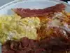 The pancakes were rather tough, and they come with "pancake syrup" instead of maple syrup, but everything else was excellent.