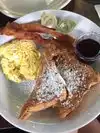 Good serving size Fast service Good strong brewed coffee Very pleasant wait staff Oh so yummy french toast Non greasy bacon Lots of parking