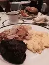Had 8 oz filet. Was done perfectly and truffle butter put it over the top. The sides were great and large enough to share except for the potatoes au gratin which was the best and cheesiest I have had. The cheesecake made a nice finale.