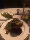 I had the Chilean Sea Bass and my husband had the rib eye steak. Both were the best we've ever had and very generous portions. The most tender steak and perfectly seasoned and cooked fish. Couldn't have asked for a better meal. The service was also excellent. Where the shock came was the bill. With tip came to $250 for 2 and only had one side of asparagus and a soda and ice tea, and one after dinner coffee. Though the food was worth every penny, the prices were quite high for what you got.