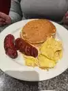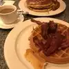 Stopped in here for breakfast on Labor Day and again a few day later. Amazing breakfast, huge portions and good value. My husband had sausage and pancakes, while I had a Belgian waffle with bacon, we both had coffees. You get a glass of ice water given to you as soon as you sit down. A nice touch considering it was a heatwave during our visit. The staff are friendly and efficient. Our first breakfast cost $31. On the second visit my husband had the same again, I had scrambled eggs with bacon which also comes with potatoes. The eggs were a cross between scrambled and an omelette to be fair, but they were tasty. We both had coffee again. This time it was $26. Both visits were good and kept us full well into the afternoon. Would recommend.