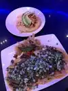 The food was average for the price and our service was terrible. They were expecting a large party and most of the servers spent time setting that table up, often walking by us without noticing our drinks were empty or that we had waited 20 minutes before someone approached us to take an order or see if we were okay. It seems like a neat place with the indoor music but this was not our night. Sorry I canât rate it more as we were from out of town and it came highly recommend. Service is key and it was just not there.