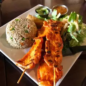 Red curry is flavorful. Beef salad is spicy even if you requested mild. Lots of fresh vegetables like morning glory and Chinese broccoli. Fried rice chicken and pa se u are my kids favorite. Reasonable prices $9-$13 a person. I always request individual rice cause they charge $1.5 per person on the table even if you don’t eat rice. Valet parking- impossible to find on the road $4