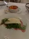 Gotta love a place that serves you food before you order! Soon after you're seated, they bring a tasty dish of mozzarella in a lovely meatless red sauce and some warm Italian bread. Great menu with many interesting dishes. Finally settled on the swordfish, which was fantastic. Service and presentation was excellent. Tables were pretty close together, but we ended up discussing wine with the couple next to us. Corkage fee was reasonable - maybe $30? Cost is in line with quality of meal and other nearby restaurants.