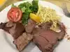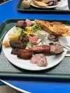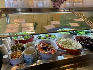 I always skip the salads. Cheese bread good, mashed potatoes good, chicken stroganoff usually decent. I get the lamb, beef, pork. Usually ask for medium rare though the loin only comes in well done apparently (at least today). Always a line. Usually get it to go and it's best eaten hot. Been going for years.