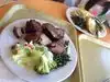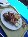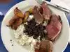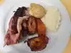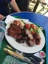 Be prepared to queue. If you're in the farmers market as we were, as part of a day trip, and you love meat, stop here. You choose your portion size which is good for most. Tasty meal with lots of choice!