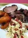 Meat was over cooked and dry. It had good flavor but that did not make up for texture. If they more thinly sliced it maybe that would be better. I liked that it was self service so you can pick your own portions and number of sides. Sides were good but the star which was the meat was bad.