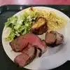 Lot of salad to choose, well cooked meat and chicken, worth spending............................................