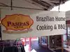 When we visited the Los Angeles Farmers Market and were trying to decide where we should eat, the long line of customers waiting for food at the Pampas Grill, gave us our first clue that the food here would be delicious! We have visited Brazil and had the pleasure of eating their barbecue and other wonderful dishes, including little round cheese breads. We were not disappointed at Pampas Grill!!! Customers chose their food from a cold & hot buffet, and then can have the barbecue meat(s) of their choice carved off of the long skewers and added to their plates. Cost is determined by the weight of your plate, just like in some of the restaurants in Brazil. There is a wide variety of food to chose from, everything looks so good it is hard to limit yourself! After you pay for your food, it is possible to find a table to sit at in the market - more tables are located on the 2nd floor. The food is wonderful, cost is reasonable, it is definitely worth the wait!