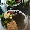 Joined the very long queue, assuming this was THE place to eat in the Farmers Market. Salad choices were along the lines of hardboiled eggs, chopped lettuce, beet root, cold broccoli, etc. A couple of bread items, then the BBQ meats. I had chicken and lamb. The chicken was raw in the middle- completely inedible, and the lamb was tough and fatty. Apparently you get to order how you like your meat cooked - though this wasnt offered as a choice to us. For over $30, it was really average and disappointing.