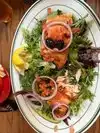 Another great lunch. Ordered the Ensalada de Salmon ($19.95) and it was outstanding! Lunch entree included two large pieces of salmon - so much, I couldn't finish it. Hubby had the two item combo plate ($16.95) and said it was very good. Slight downside - we were seated upstairs and it was a challenge to get the attention of our server.