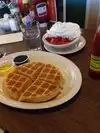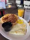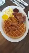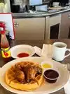 I pulled in on a very busy, line out the door, Sunday. The diner was jammed packed but I was able to get a fast seat at the counter. Service was outstanding, my coffee was filled multiple times. I ordered chicken and waffles which was hands down the best that I have had. Crisp tall waffle, fabulously tasty fried chicken, served with a portion of syrup and clarified butter. Everything smelled and tasted great.