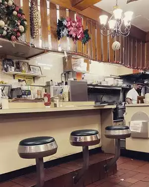 Tons of tinsel and ornaments adorn this old fashioned bistro, and the food is so good you will come here year round! Take a holiday card worthy pic on the staircase for the best view!
