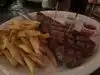 Atmosphere was good but really loud. 3 of the 4 of us had the Steak Frites that had to be sawed into to even eat. Was not impressed for the cost.
