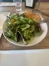 Croissant sandwiches, creative salads and a sidewalk patio. I've had lunch here many times, always a joy to find organic food wit a french twist. Very warm employees, good service and excellent food.
