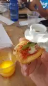 Tiny place. Plan to get your stuff to go unless your lucky and a table is open. Gelato (dark chocolate) was excellent! We also got a calzone...it was good. Sauce was sweet and it had a dash of balsamic vinaigrette with it.