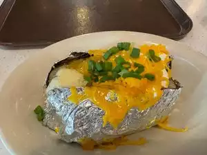 They have huge baked potatoes stuffed with all the goodies. We order potatoes and/or barbecue at least twice a month here. Love the sauce. Tangy and not too sweet. I usually hit the drive-thru on my way home. Very convenient.