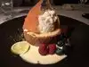 The service was good at Pappa's, and the food was hot. The steak was undercooked, and for the price I would have expected more. so please watch this when ordered. I tried the raspberry sorbet for dessert. It was beautifully presented in a chocolate bowl and quite tasty.