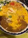 First the salsa and chips its complimentary with a meal great salsa fresh warm nachos. Super huge plate and great price I had beef enchilada. Sorry the meal didn't made it intact jeje