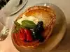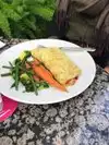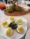 Sat outside with my wife. A bit chilly, might have been a day to eat inside, which was warm and cozy. Deviled eggs were just okay; lacked zip, kind of bland. Everything else was superb. My wife’s seafood omelet was large, stuffed with shrimp and crab, and the veggies (instead of potatoes) were great ... so she said. My pappardelle (sp?) was a delicious dish — lobster and shrimp with homemade tasting pasta served perfectly hot. Coffee (Lavazza) a nice finish. At $72 with a tip, somewhat pricey lunch, but worth it in my opinion.
