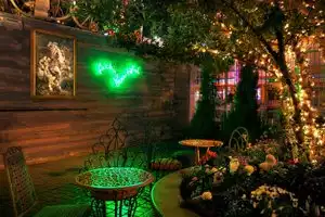 Incredibly cute restaurant and bar with great outdoor seating just steps outside of the Fremont Street Experience. Full of art, flowers, fireplaces, chandeliers and more. Fun and a nice break from the casino scene.