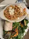 They have a lunch menu with various pasta dishes and salads. I ordered SPAGHETTI SICILIANO with a FIELD GREENS SALAD and a side order of GARLIC BREAD. The salad was large and flavorful. The spaghetti was good. Had more of a Mediterranean flavor with capers. I ordered butternut squash ravioli to go but haven’t tried it yet. They were short staffed but the servers were hustling and friendly. Would recommend.