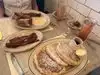 We ordered the burger with french fries, salmon , trout with toasted almonds and peas, pappardelle with rabbit ragu and the steak tartare. The salmon was nice as was the steak tartare . The trout was indifferent as was the burger. French fries precooked fast food quality. My daughter who ordered the pappardelle asked for grated cheese because none was brought alongside her dish. She had to wait for over ten minutes and she had to ask our waiter again. Worst of all at some point water started dripping from the ceiling on my daughters head and shoulder. We told the waiter and he brought a broom with a towel wrapped to the end and started sweeping the ceiling above our heads and table with our drinks and food on top. The service generally was very low standard. Would not go there again unless they restore their quality of food and service.