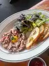 A new favorite. When we visit NYC we have been going to Balthazar, now we can add Pastis to the list. Run by the same group they have a professional staff that is first rate. The food was wonderful. We started with some of the best oysters we have had, Then onion soup we all enjoyed. The steak tartare could have been seasoned better but was still enjoyable. The steak sandwich were a lot of food. The fries were terrific and the Mac and cheese was a perfect side to the meal. Needless to say we didnāt have room desert.