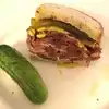 To begin with, the pickle sandwich that wasn’t even hot. Supposedly the pastrami and Cole slaw is stuffed inside a whole hollowed out pickle, and wrapped with paper to keep contents from dripping. What I got was a few slivers of pickle oround the meat which was and then held together with paper on outside. Once the paper was removed, the insides totally fell apart and I had to resort to eating the so called sandwich on a plate with knife and fork. Total rip-off ! Not as advertised and pictured.