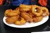 My wife an I were in New York City for just 3 days and ended up eating here twice - it was that good. The first time we went for lunch and had the overstuffed Pastrami and Corned Beef sandwich... so big that it fed both of us. We ate in the restaurant, so they served us pickles on the side... I guess that's a New York thing. Those were good too. But the sandwich was amazing! Every bite was flavorful... and like I said, so good, we came back a 2nd time during our visit. The second time we tried a side dish of Onion Rings.... also amazing. The plate was huge! The onion rings were perfectly done... not greasy or overly oily (not the same thing).