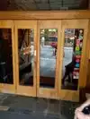 Restaurant located one block from the riverfront area in Greenpoint .We thought it was closed as it had a barn like door across the front.Packed with a very trendy clientele but music so loud that you have to shout to your fellow diners-I think I picked out Dance to the Music by Sly Stone.Also its so dark that we had to use our phone torches to read the menu.My kids said the top price pizzas were nothing special. Mr Gee was touring the tables.Sorry but not a relaxing evening.