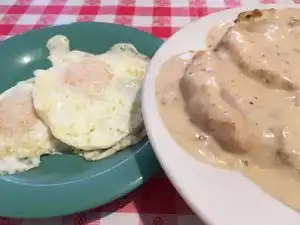 Traditional homey feel and terrific food. Service is fast and friendly and every item I have tried has been very good. The biscuits and gravy are a must!