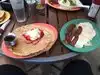 I've been here on two separate trips. Although the pancakes spread out over the plate they are thin. If you order a side of bacon beware, as there are only three small slices. The kids meals are small (as per their bellies) but you wouldn't expect that with the price. Someone ordered the turkey club on rye an it looked decent. The waiters appear to be very busy even when there isn't a large crowd, but the heavier work falls on the staff assisting... bus boys, etc.