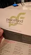 Good variety of food and everything is delicious. Salads, Sandwiches, Pizzas, Hot dinners, soups, raw food and juices, desserts and cakes. We love Peacefood Cafe!