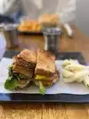 Super satisfying lunch with abundant and tasty courses. Prices more than adequate for NYC, friendly and fast staff, there are countless wonderful cakes and cakes and all vegan. We tasted the burger with chips (it is not made with bun bread but with a delicious leavened focaccia) and a sandwich with pumpkin, caramelized onion, cashew cream, salad and tempeh that I added as a protein quota (+2$). Then a discreet espresso is a great double chocolate cookie. After days of American cuisine it was paradise.