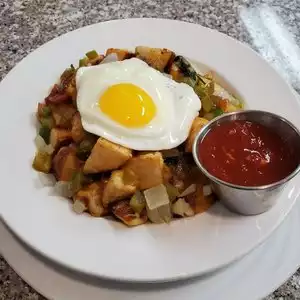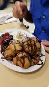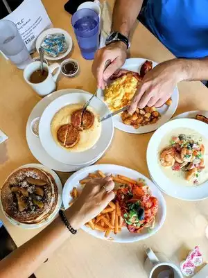 I'm most impressed that everyone there had a smile and was helpful. Our waiter was very good. This gave me a very good feel about the place. But I tend to order my basic scrambled eggs with cheese, bacon, and pancakes. This is just basic American breakfast. Nothing special and a little higher priced than just your standard I-Hop restaurant. At I-Hop you get 3 pancakes, here was 2---and they came a bit cool, not hot. Nor did they provide hot syrup. I did like the eggs as they seemed real, not made from powder. The cheese grits were good, but I want HOT food. Not sure I would go again.