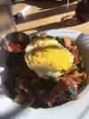 Order the duck bacon,fantastic good service, food is great they have peach coffee yess very good , on the corner of 47th king dr. Ample parking.