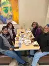 Visiting Chicago from Portland. We were brought here by relatives that live in the area. Each and every server or hostess we came in contact with was above and beyond friendly, cheerful, helpful and accommodating. Haven’t been treated that nicely in a long long time, if ever. Never ever even considered asking for coffee our cups were always full. Asked if they did anything for birthdays and the most amazing plate full of beignets with berries and chocolate drizzle showed up. Every single server that walked my individually wishes my husband a happy birthday. I had the shrimp and grits it was superb!! They have catfish and collard greens. Friends had the healthy omelette with fluffy egg whites. The peach bourbon compote was wonderful. Oh and an unexpected surprise was how delicious the peach coffee was! It was like having the essence of peach in a cup of delicious hot coffee. The smell was so wonderful I bought a bag. The only recommendation for change-please carry decaf peach coffee!! Well done will return when we come back to visit.
