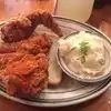 Very friendly welcome and some nice interesting menu items not often seen in this part of America. We had the fried chicken with asparagus side, fries and Mac and cheese. Southern favourites like potato salad and greens looked delicious too. Sides were delicious and chicken very nice too. I think the chicken is slightly overrated (best in city etc etc) but we really enjoyed it nevertheless. Staff very pleasant and a very nice environment and a nice mixed crowd of people inside. Some areas of this neighbourhood feel a bit edgy At night but don't let this put you off coming here- it's well worth a trip and is great fun. Weekend evenings look mega busy so try early evening on a week night and it will be a bit less busy without a wait for a table.