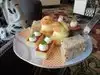 Love to have afternoon tea while on vacation. This one was very nice. Loved the decorations in the room, the view, the pretty tea service and the funky tea tower. The ham sandwich and the curry sandwiches were to be expected, the truffle sandwich had no flavor and was a waste of time. The scones were good. The sweets, while tasty, did strike me as possibly store bought.