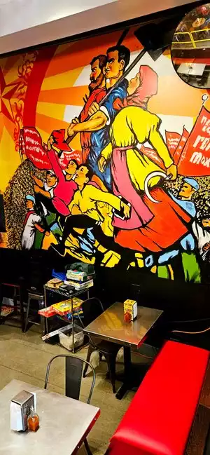 I eat a lot of Asian dumplings but it has been years since I had good eastern block dumplings and Pel'Meni Dumpling Tzar do them right. I had the Beef & Potato dumplings with the classic Sour Cream, Butter and Curry which are with a slice of dark bread. These were so good which the typical denseness of a Russian Dumpling and just a bit of heat. The restaurant itself has that no frills eastern block feel especially since you enter from a side alley an from the seating area you look right into a tattoo parlor. Very appropriate with a statue of stalin outside on the corner.