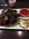Excellent food with average service. We started our meal with hot tea, complimentary, and two appetizers. An order of Roti Canai (see picture) and Vegetable Spring Rolls. The Roti Canai was cooked perfectly and the curry flavored chicken broth was very tasty. The Spring Rolls were a touch over deeper fried yet remained delicious. Our main meals were Basil Beef, Penang Pad Thai with Coconut Flavored Rice and Spareribs Malaysian Style (see picture). All were prepared perfectly and extremely scrumptious. The service was average at best. Also, this restaurant will bring food when it is ready opposed to bringing it all at once. This and a not so present waiter did not distract from a great meal. Overall, it was a very enjoyable experience.